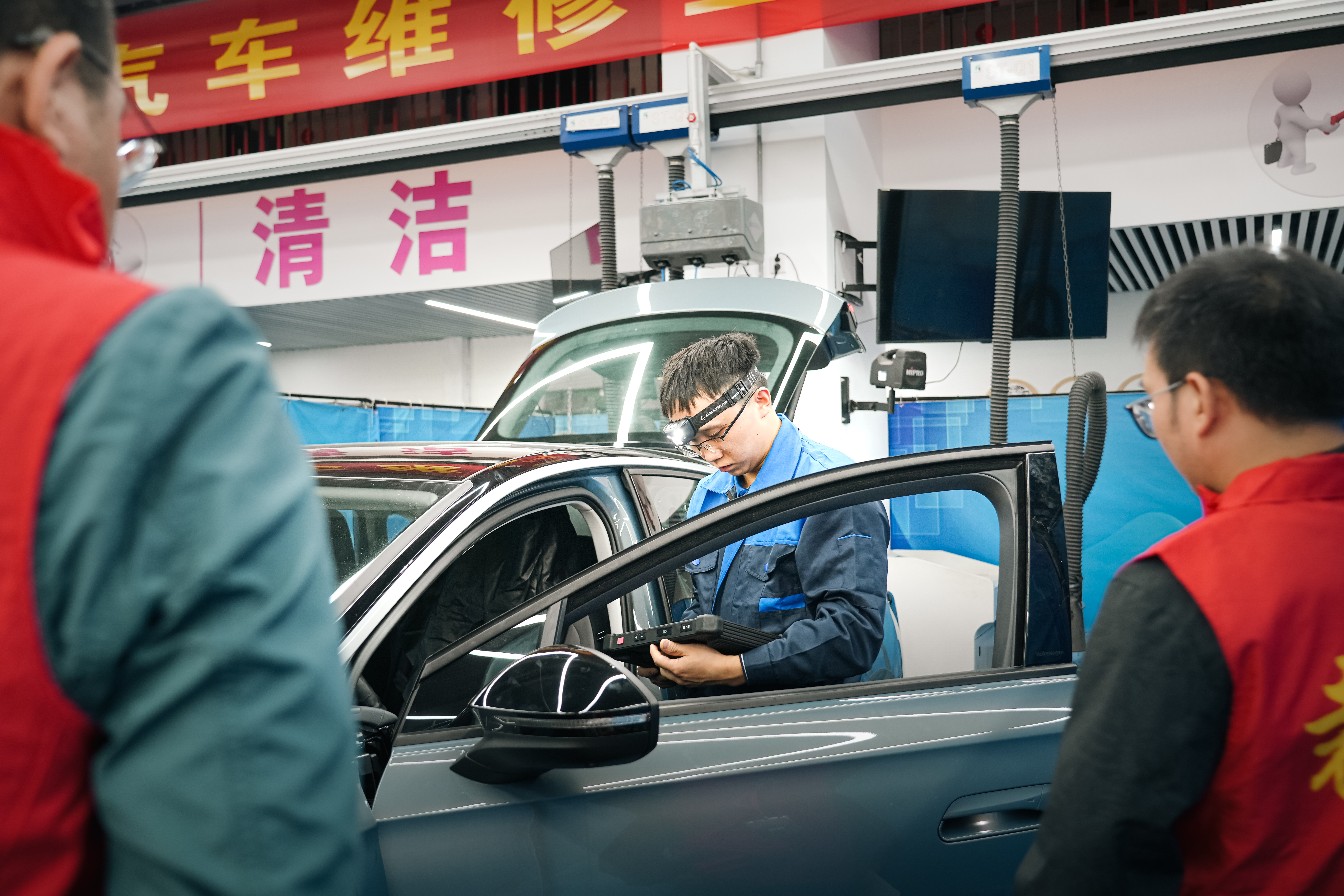 本次竞赛分为理论知识机考与现场技能操作两个环节。理论知识机考重点考查选手对本职业基本要求与相关知识的掌握程度;技能操作则侧重于评估选手的实际操作水平,具体包括对新能源汽车常见的低压电源系统、高压控制系统、车身电气系统、驾驶辅助系统等关键部件的诊断与排除能力。赛场内氛围紧张激烈,参赛选手们沉着应赛,用平日积累的理论知识专注答题,在实操环节中动作娴熟、操作严谨,充分展现出精益求精的工匠风采。