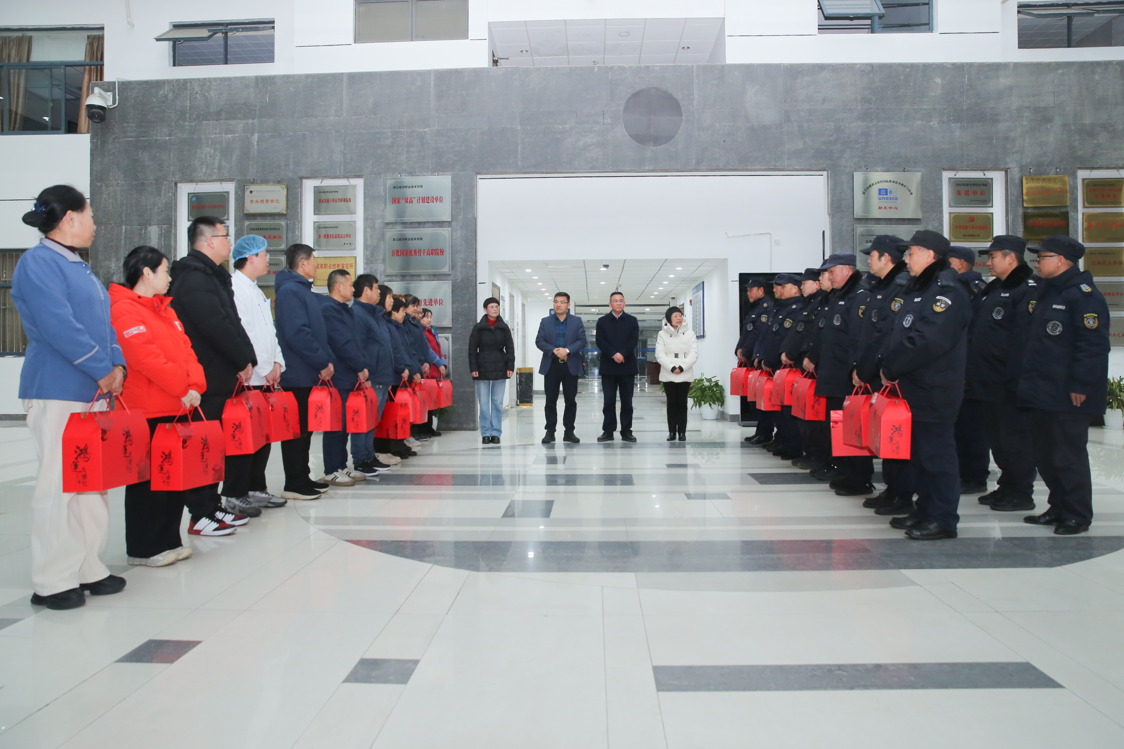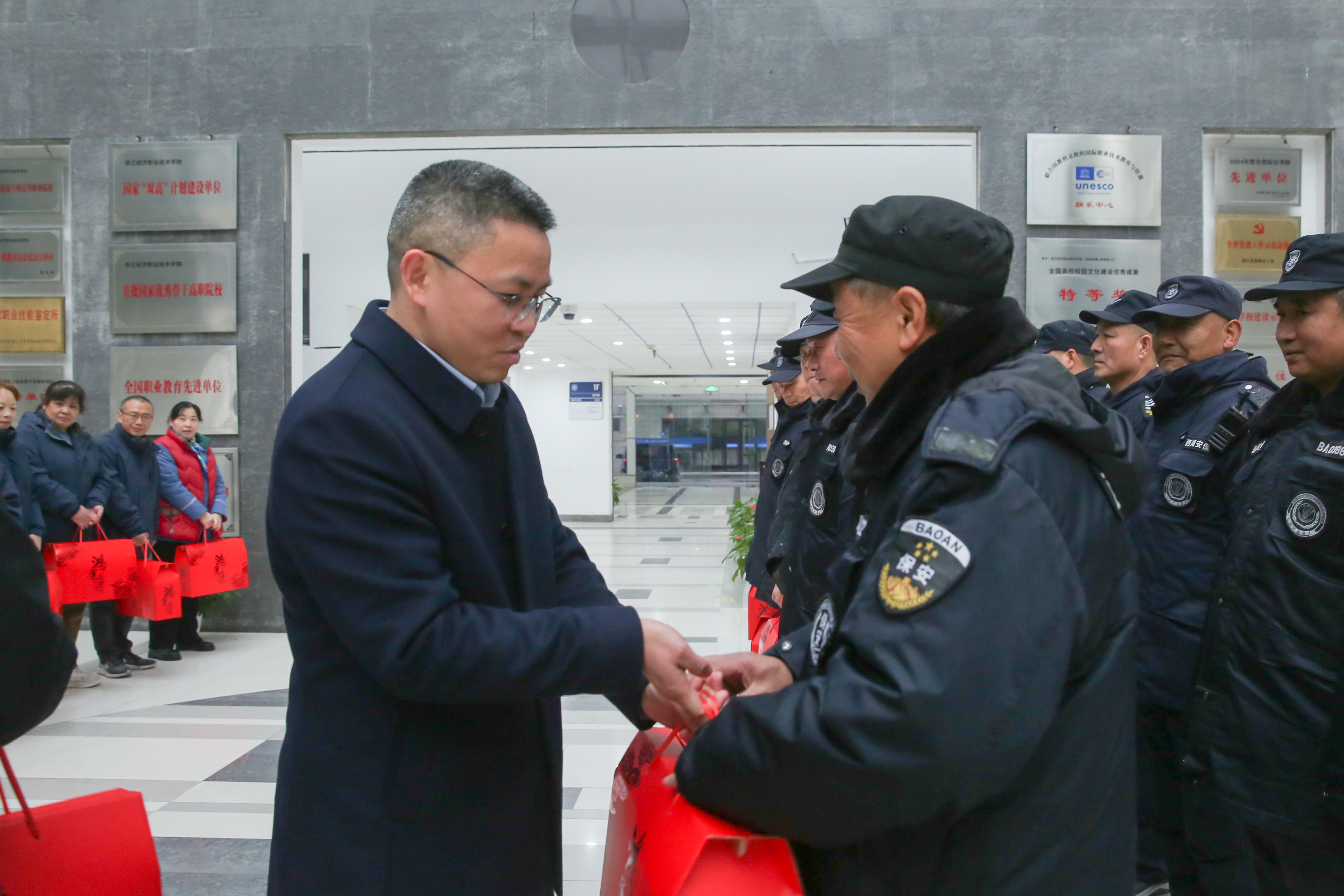 叶伟江代表学校党委对寒假期间留守学校从事后勤保障、安全保卫等工作的教职工表示感谢,肯定了他们坚守岗位的责任担当和履职尽责的奉献精神,并向他们致以新春的诚挚问候。